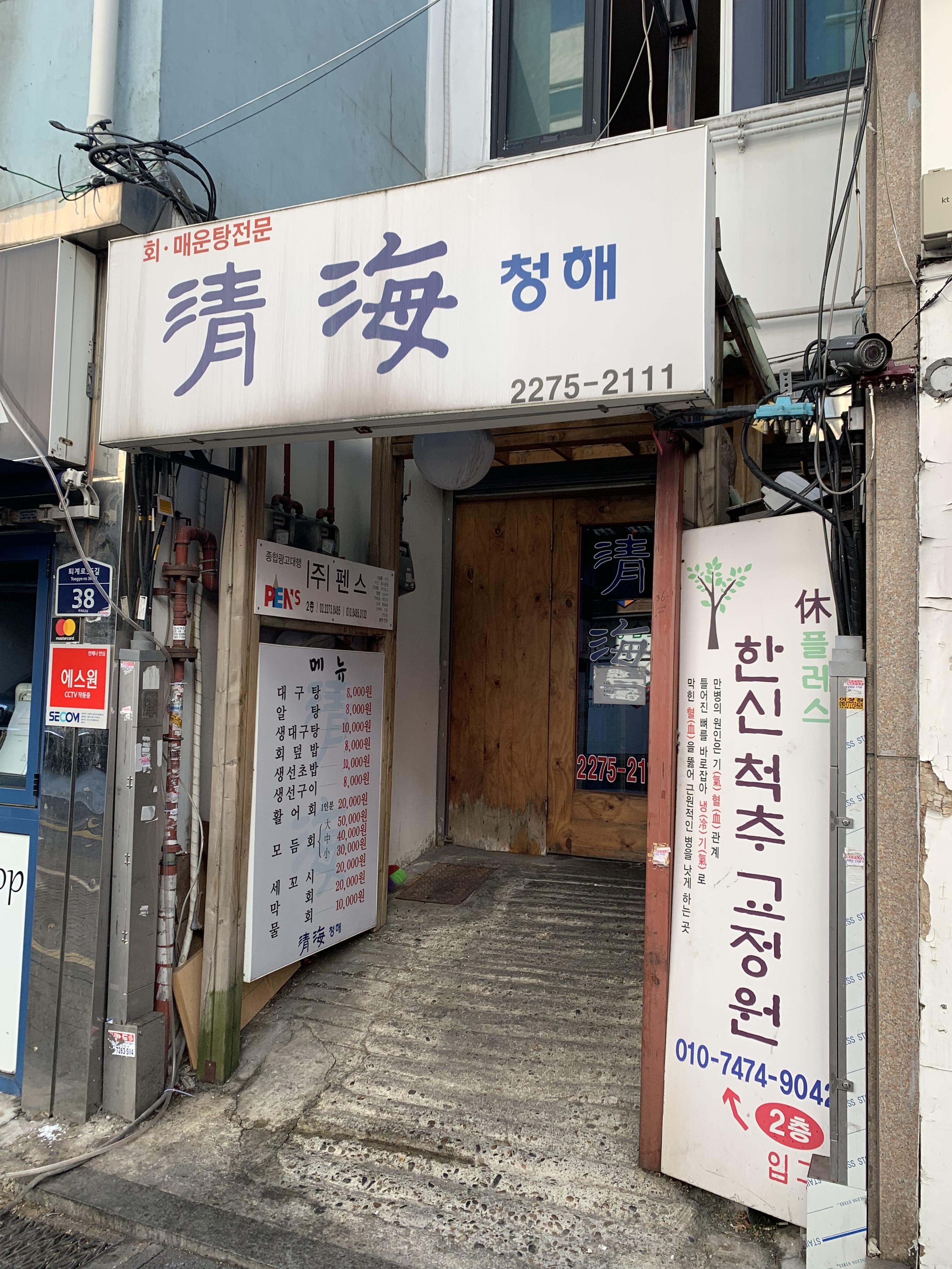 청해는 노포 스타일의 식당입니다. 사귄 지 얼마 안 된 연인끼리 데이트 코스로 오기에는 부적하다는 점 참고해주시면서 리뷰 봐주시면 좋을 것 같아요~